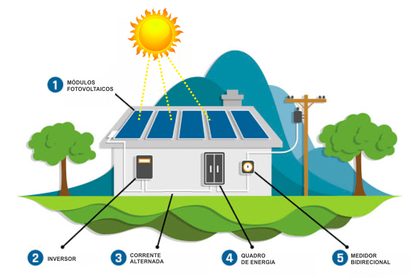 Energia renovável, gratuita, rentável e ambientalmente correta. O sistema de energia solar fotovoltaico oferece economia e sustentabilidade. Quando a geração de energia é maior que o uso, o excedente é exportado para a rede. Desta forma, o usuário recebe créditos e economiza na fatura de energia elétrica.